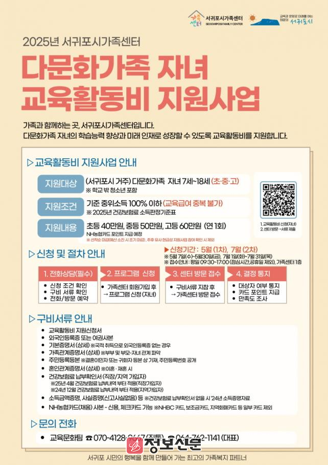 ![]() 서귀포시, 저소득 다문화가족 자녀 교육활동비 지원사업 추진 |