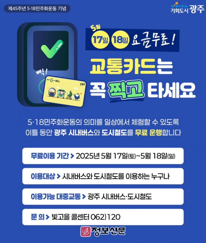 ![]() 광주광역시, 5월 17~18일 ‘대중교통 무료’ 운행 |