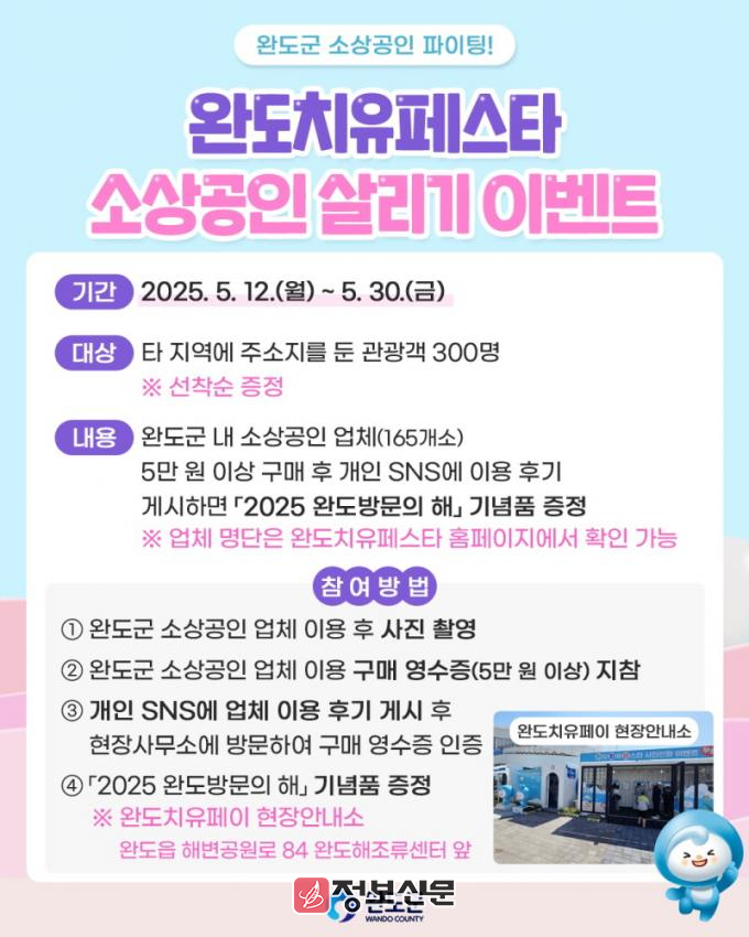 ![]() 완도군, 소상공인 돕고 기념품 받자! 치유 페스타 이벤트 진행 |