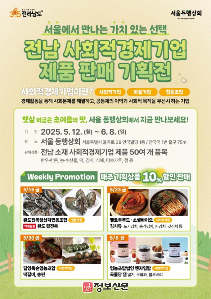 ![]() 전라남도, 사회적경제기업 서울 ‘동행상회’서 수도권 소비자 공략 |