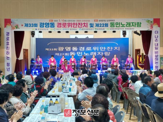 이번 행사는 광영동청년회(회장 양희수) 주관으로 진행됐으며, ▲효행자(홍선화) 표창 ▲공로패(통장협의회장 서정민) 전달 ▲어버이 은혜 감사 큰절 ▲오찬 ▲초청가수 공연 ▲동민 노래자랑 ▲경품 추첨 등 다채로운 순서로 구성돼 큰 호응을 얻었다.