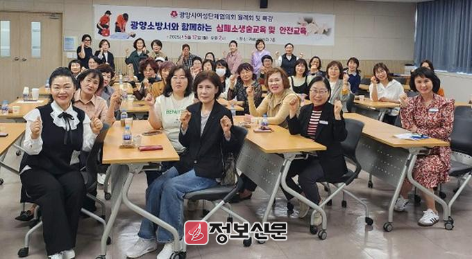 여성단체 회원들을 대상으로 진행된 이번 교육에는 광양소방서 소연주 소방장이 강사로 나서 심폐소생술(CPR)과 자동심장충격기(AED) 사용법, 기도 막힘 시 응급처치법 등을 실습 중심으로 설명하며 실전 능력 향상을 도왔다.