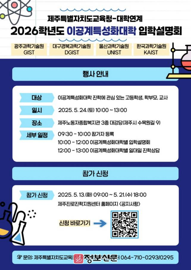 ![]() 제주특별자치도교육청, 고교생 대상 이공계특성화대학 맞춤형 입학설명회 개최 |
