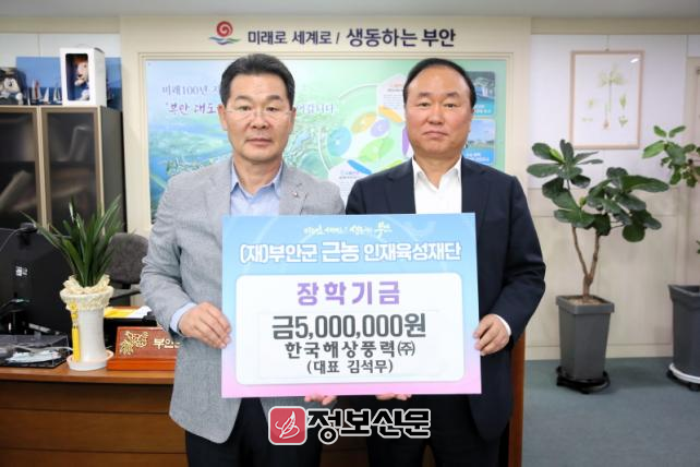 ![]() 한국해상풍력(주), 부안군 근농인재육성장학금 500만원 기탁 |