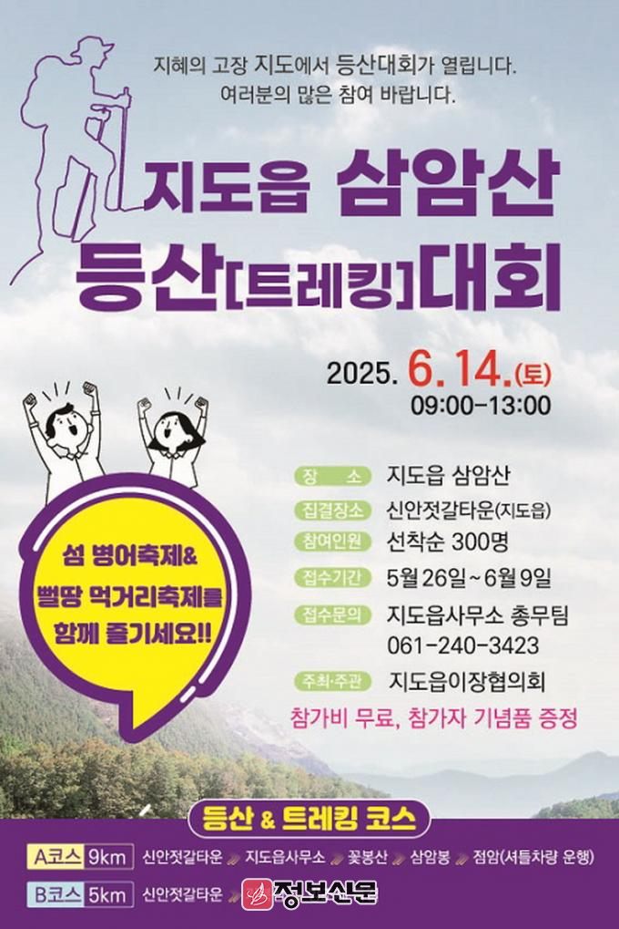 지도읍 이장협의회(회장 홍은배)가 주최하는 이번 등산대회는 지도읍의 대표 먹거리 병어축제 기간에 개최돼 맛보고 즐기는 특별한 날이 될 예정이다.