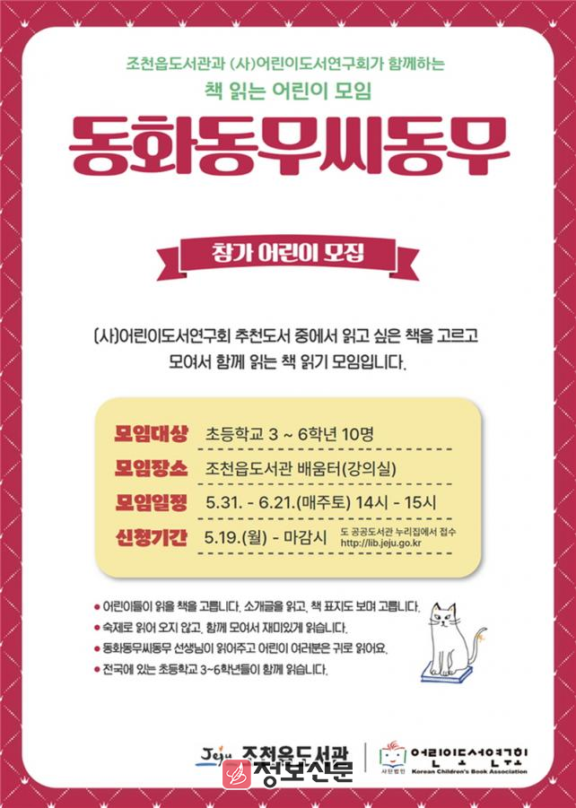 ![]() 조천읍도서관, 어린이 독서 프로그램 ‘동화동무씨동무’ 운영 |