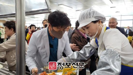 이날 김혜경 여사는 오전 11시경 도착하여 약 1,500여명의 어르신들에게 국을 나눠드리고 따뜻한 인사를 건네며 뜻깊은 시간을 가졌다. 김여사는 어르신 한분 한분 손을 잡으면서 가정의 달을 맞아 어떻게 지내고들 계시는지 안부도 챙기면서 정감 어린 행보를 이어갔다.