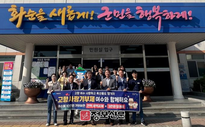 15일 여수시에 따르면 농산물유통과 직원 14명과 화순읍 직원 16명은 각각 10만 원씩 모금해 총 300만 원을 상호 기부했다. 또, 여수시는 다가오는 2026여수세계섬박람회 참여와 지역 농특산품 홍보를 병행해 두 지역 간 교류와 협력관계 증진을 도모했다.
