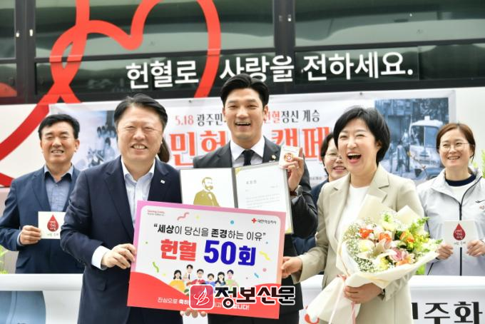 ![]() 광주광역시의회 이명노 의원, 제45주년 5.18 맞아 헌혈 유공장 금장 수상 |