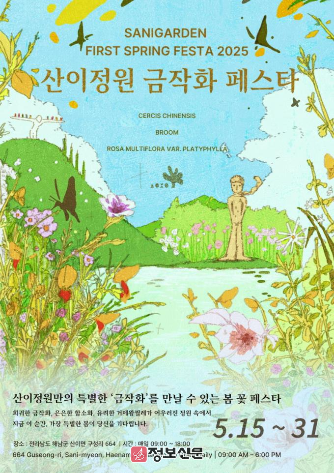 한편, 산이정원은 2025년 문화체육관광부와 한국관광공사가 공동 선정한 광주·전남지역 유일의 ‘강소형 잠재관광지’로서 미래형 정원도시로의 성장을 기대하고 있으며, 올해 개장 1주년을 맞아 ‘첫 봄 페스타’ 프로그램과 ‘1주년 SNS 인증 이벤트’ 등 다채로운 행사를 통해 적극적으로 관광객 유치에 나서고 있다.