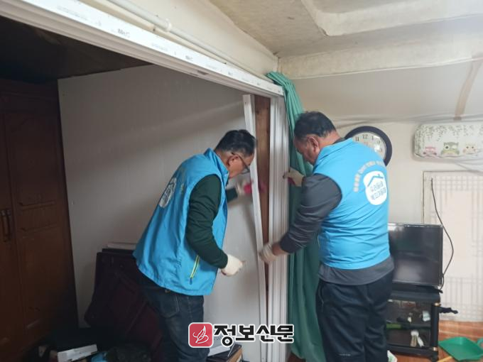 이번 봉사는 생활 속 불편을 겪고 있는 어르신의 주거환경을 보다 안전하고 쾌적하게 만들기 위해 추진됐으며, 안방에 웃풍을 막기 위한 샷시문을 설치하고 노후된 화장실 문과 전등 교체, 도배장판 등 주거 시설을 전반적으로 정비했다.