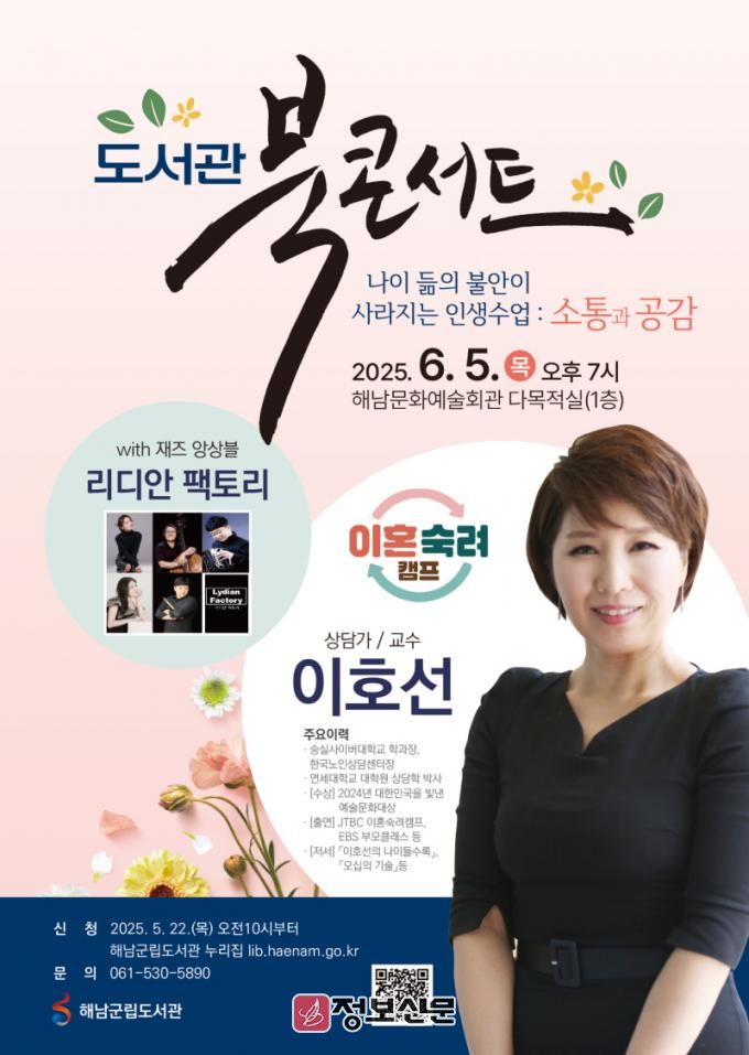 ![]() 해남군, 이혼숙려캠프 소통전문가 이호선 교수 북콘서트 개최