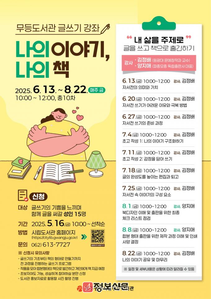 ![]() 광주광역시무등도서관, 성인대상 글쓰기 강좌 나의 이야기, 나의 책 운영 |