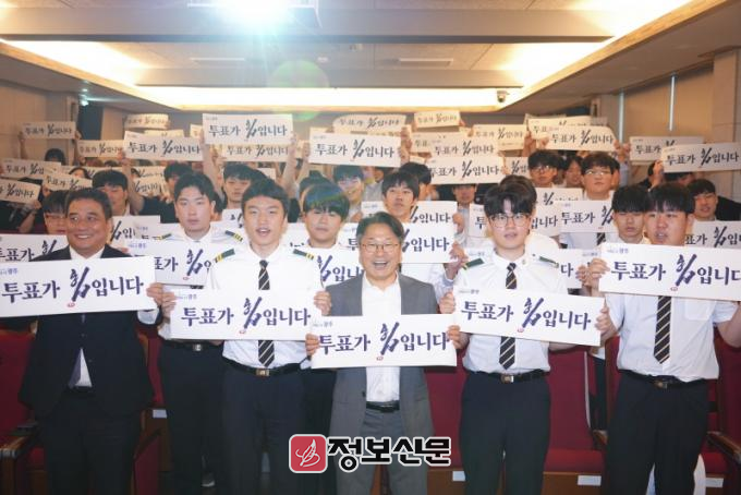 강기정 시장은 이날 직접 학교를 방문해 학생들과 소통하며, 민주주의의 가치와 유권자의 역할에 대해 메시지를 전달했다.