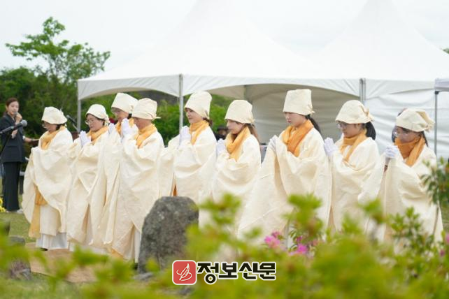 이날 오전 설문대할망제단에서는 국내 유일의 여성제관 9인이 집전하는 제의식이 엄숙하게 진행됐다.