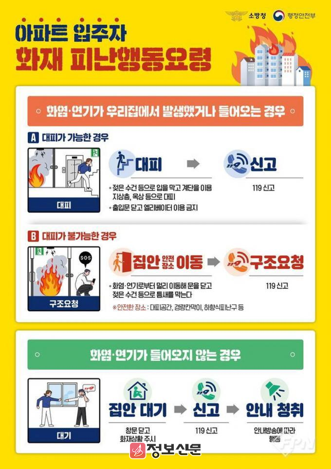 이에 소방서에서는 주거 안정성을 높이고 인명피해를 저감하고자 ▲공동주택 관계자(관리소장 또는 소방안전관리자) 안전교육 ▲화재 피난행동 요령 홍보 ▲화재 피난 안전 매뉴얼 배포 ▲아파트 대피계획 세우기 홍보 등을 중점적으로 추진할 계획이다.