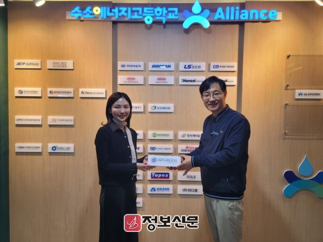 APGREEN 박태윤 대표 역시 “저온 플라즈마 기반 수소생산 기술을 바탕으로 글로벌 진출을 준비하는 과정에서 수소에너지고와의 협력은 지속 가능한 생태계를 만드는 기반이 될 것”이라고 기대감을 나타냈다.