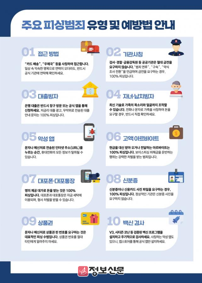 또한, ’25. 5. 1.부터 6. 30.까지 2개월간 피싱․투자사기․불법대부업 특별자수․신고기간 운영 중에 있으니 적극적으로 협조해 줄 것을 당부드렸다.