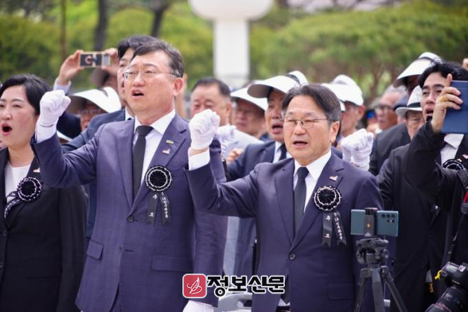 강 시장은 끝으로 “5·18 45주년을 맞는 우리는 새로운 민주정부를 향한 여정의 한복판에 서 있다”며 “우리를 이곳까지 이끌어주신 오월영령 앞에 부끄럽지 않게 남은 우리가 해야 할 일을 하겠다. 오월영령이 피로 써 내려간 이야기를 더 널리 알리고 퍼트려 오월영령들이 꿈꾼 더 나은 대한민국, 더 단단한 민주주의를 이뤄내겠다”고 다짐했다.