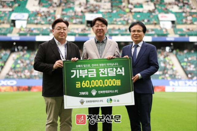 전북현대모터스FC는 17일 전주월드컵경기장에서 열린 FC안양과의 K-리그 홈경기 시작에 앞서 전주시에 정원조성 사업을 위한 기부금 6000만 원을 전달했다.