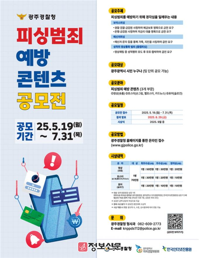 ![]() 광주경찰청, 관계기관 협력 피싱범죄 예방 콘텐츠 공모전 개최 |