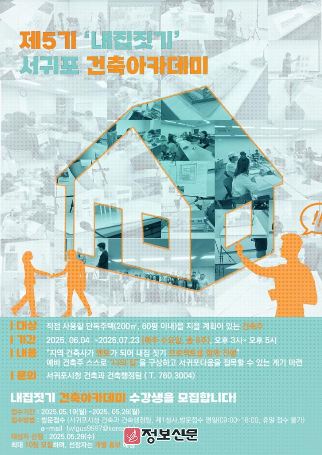 ![]() 서귀포시, 제5기 내 집 짓기 시민 건축아카데미 참가자 모집 |