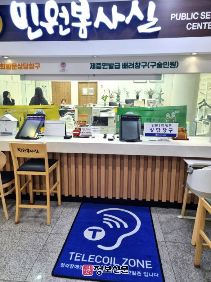 ‘텔레코일존’은 인공와우나 보청기에 탑재된 텔레코일(Telecoil) 기능을 활용해, 소음을 최소화하고 담당자의 음성을 명확하게 전달하는 보조 청취 시스템이다. 민원인이 텔레코일존에 들어서면 해당 보조장치를 통해 교신 음성을 선명하게 들을 수 있어, 정확한 민원 안내가 가능해진다.