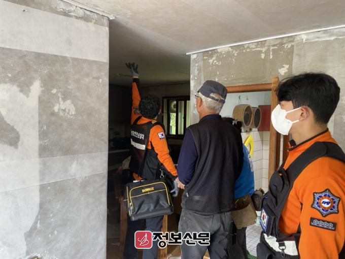 ![]() 보성소방서 생활안전순찰대가 율어면 주거취약가구를 방문해 안전 점검을 실시하고 있다.[보성소방서 제공]