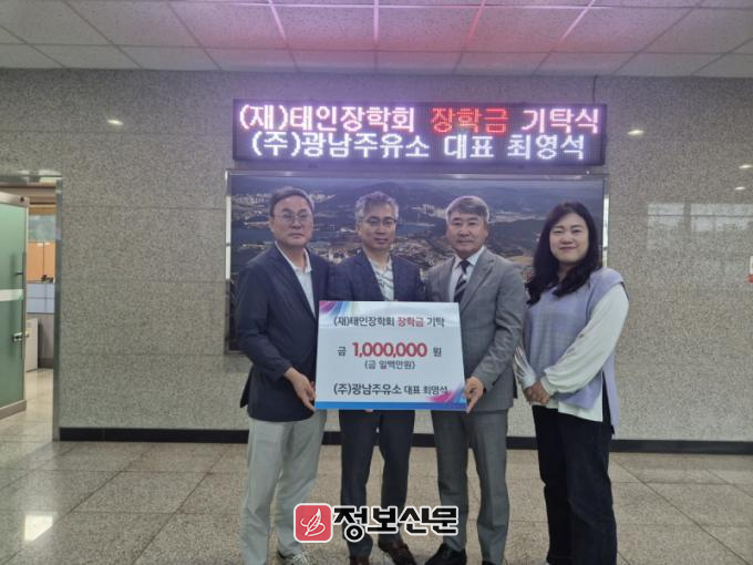 ![]() 최영석 ㈜광남주유소 대표, (재)태인장학회에 장학금 기탁 |