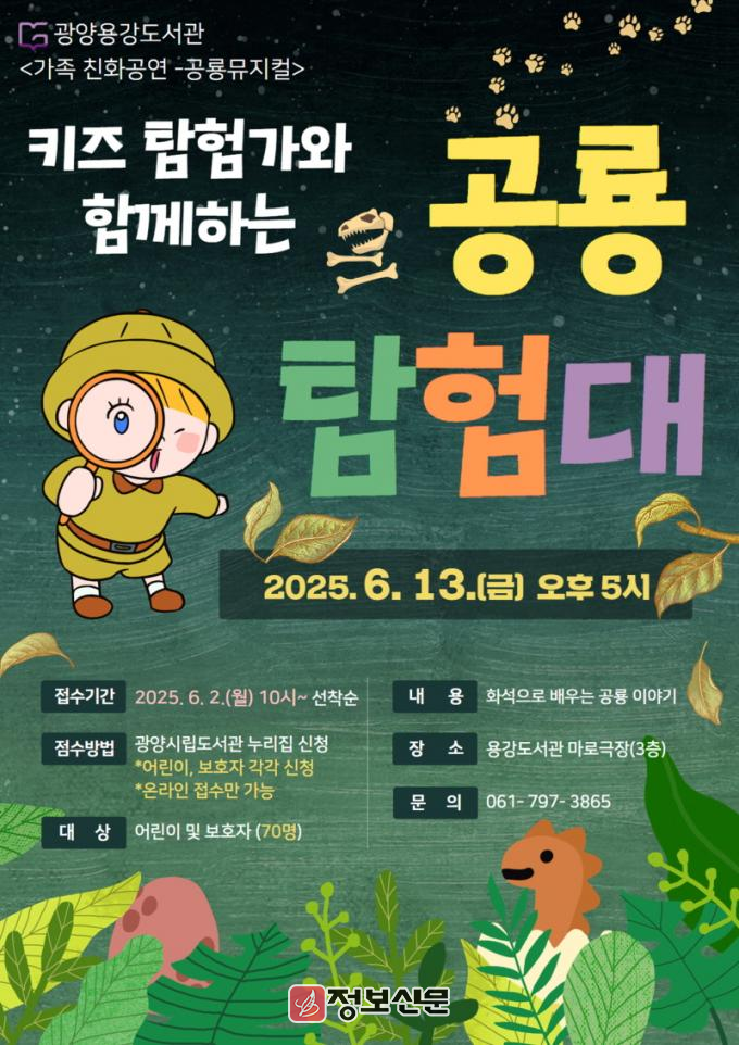 ![]() 광양용강도서관, 뮤지컬 ‘공룡 탐험대’ 선보인다 |