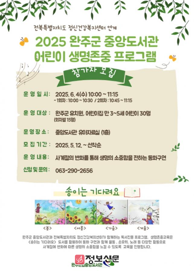 ![]() 완주군, 유아 대상 생명존중 독서교육 실시 |