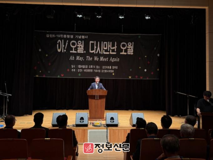 전재영 복지환경국장은 추념사를 통해 “5·18 민주화운동은 단순한 과거의 사건이 아니라, 오늘을 살아가는 우리 모두에게 자유와 정의, 그리고 사람답게 사는 세상을 향한 물음을 던지는 살아 있는 역사입니다”라며 “강진군은 민주·인권·평화라는 5·18 정신을 일상의 삶 속에서 실천하며, 다음 세대에 올곧게 계승될 수 있도록 지속적인 노력을 기울이겠다”고 강조했다.