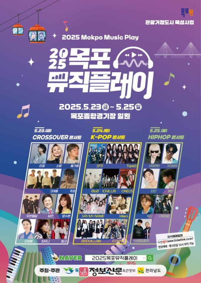 2025 목포 뮤직플레이는 ‘목포, 음악이 되다♬ Bring the music back to Mokpo’라는 주제로 목포종합경기장 일원에서 K-pop 공연, 음악·댄스 경연, 전시·체험 부스 등 다채로운 프로그램이 펼쳐질 예정이다. 23일 오후 7시에 열릴 개막식 공연을 시작으로 목포가 음악으로 물드는 3일간의 여정이 시작된다.