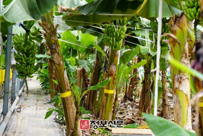 바나나는 정식 후 1년생부터 수확이 가능하며, 생육이 좋을경우 보통 2년에 3회 정도 수확한다. 주로 친환경 학교급식이나 백화점 등지로 출하되고 있다.