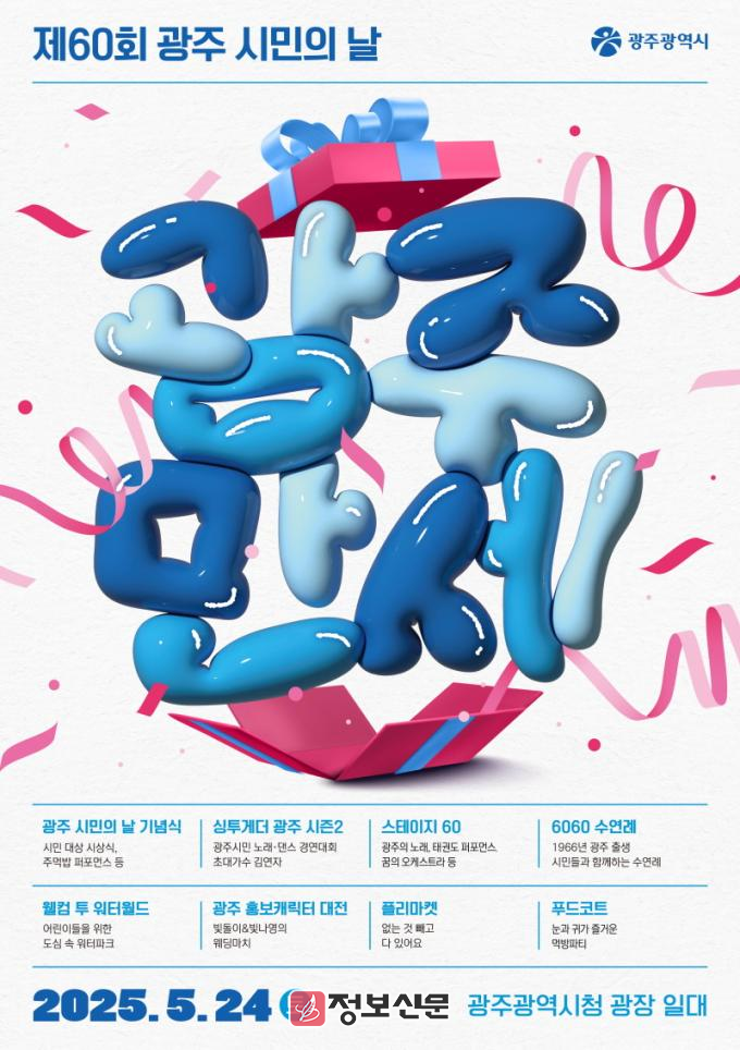 올해 ‘시민의 날’은 ‘광주만세’를 주제로, 광주의 60번째 생일을 축하하는 의미를 담아 다채로운 행사로 꾸며진다. 기념식과 문화공연, 시민참여무대, 정책 전시, 체험행사까지 온 가족이 하루종일 즐길 수 있는 종합축제로 운영된다.