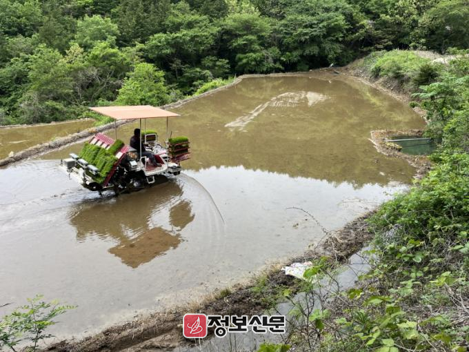 새청무는 밥맛이 우수하고 병충해와 도복에 강한 품종으로 이날 이앙한 벼는 약 4개월 생육기간을 거쳐 9월 말 수확될 예정이다. 강 씨는 “부친께서 산중 논을 개간하여 벼농사를 시작한 이후로 매년 이 논에서 모내기를 실시함으로써 한해 농사를 시작하고 있다”며 “깊은 산중 논이라 벼 재배가 어려운 환경이지만 철저한 관리로 고품질 쌀을 생산하겠다”고 말했다. 강 씨는 수십 년간 벼농사에 종사해온 지역의 대표 농업인으로, 매년 초기 모내기를 통해 다른 농가에 농사 일정을 알리는 역할도 하고 있다.