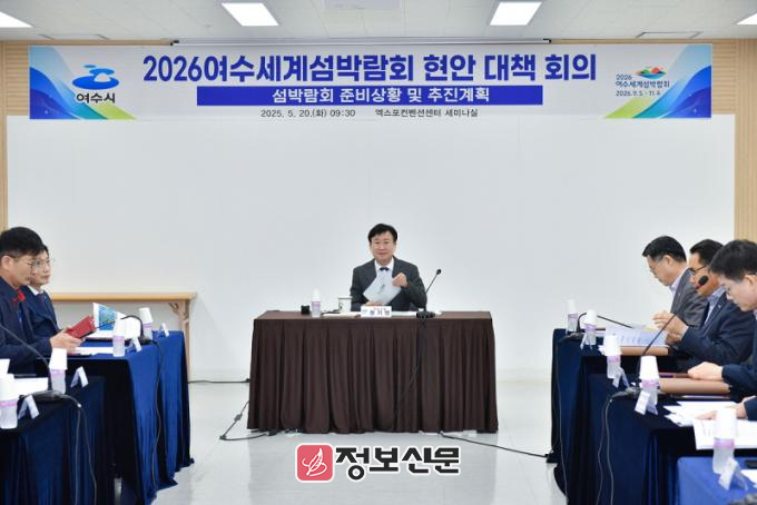 ![]() 정기명 여수시장이 지난 20일 2026여수세계섬박람회 조직위원회(이하 조직위)를 방문해 현안 대책 회의를 가졌다.