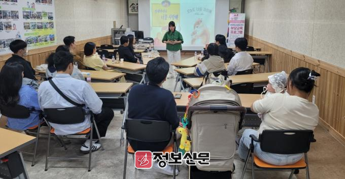 ![]() 나주시가 시립도서관에서 예비 부모를 상대로 교육을 진행 중인 모습 (사진제공-나주시)