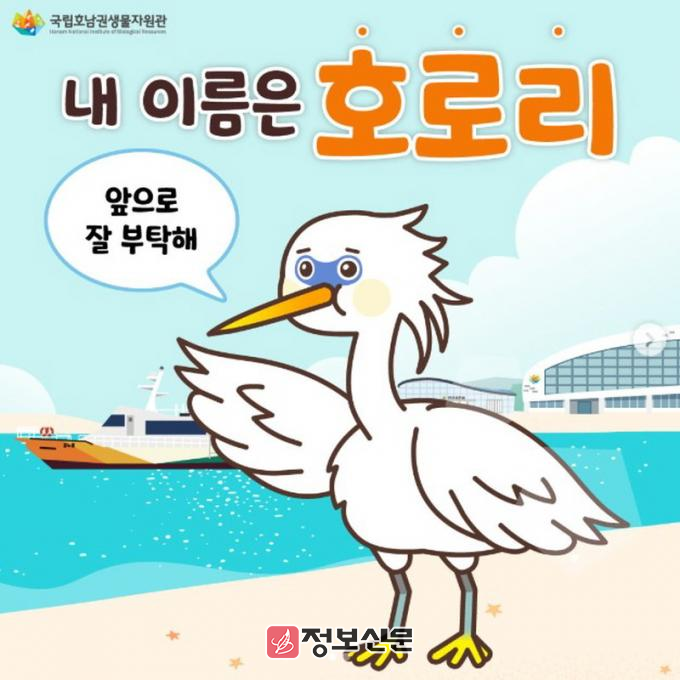 호로리는 멸종위기야생동물 1급 ‘노랑부리백로’를 모티브로 개발된 캐릭터로, 맛있는 음식에 반해 목포에 정착한 뒤 국립호남권생물자원관에 입사해 ‘조류 연구원’으로 일하고 있다는 설정이다.