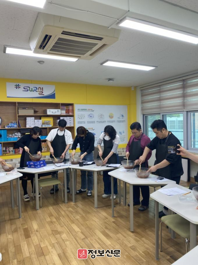 프로그램은 ▲마음 한 알(아망드 초콜릿) ▲마음 한 입(바람떡) ▲마음 울림(글라스 아트 도어벨) ▲마음 한 땀(가죽공예) 등 총 4개 과정으로, 다양한 체험을 통해 교원들이 심리적 치유와 정서적 성장을 도모할 수 있을 것으로 기대된다.