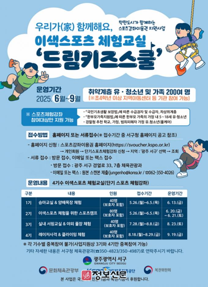 ![]() 광주시 서구, 스포츠 체험복지 ‘드림키즈스쿨’첫선 |