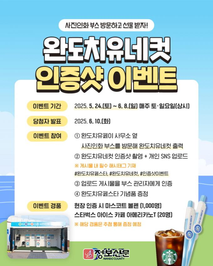 ![]() 완도군, 2025 완도 치유 네 컷 SNS 이벤트 진행 |