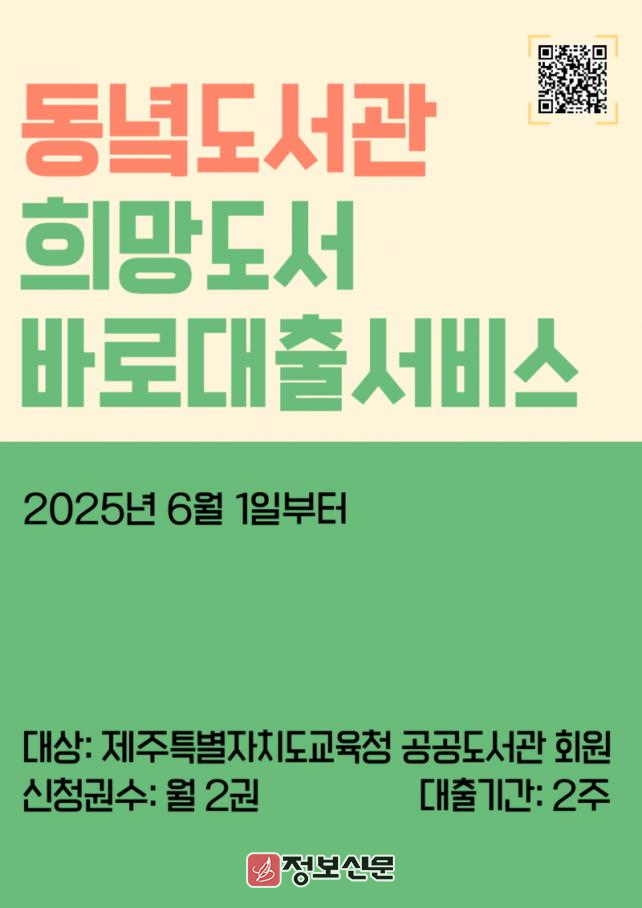 ![]() 동녘도서관, 희망도서 바로 대출서비스 개편 운영 |
