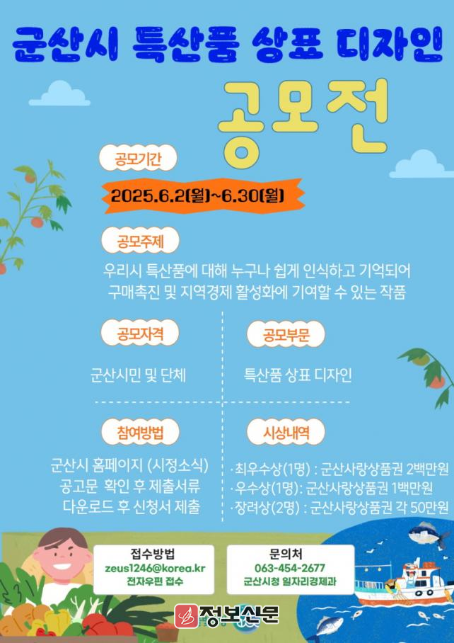 ![]() 군산시, ‘새들군산’새 단장을 위한 특산품 상표 디자인 공모전 개최 |