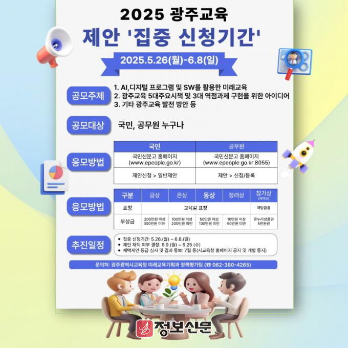 ![]() 광주시교육청, 6월 8일까지 광주교육 제안 집중 신청기간 운영 |