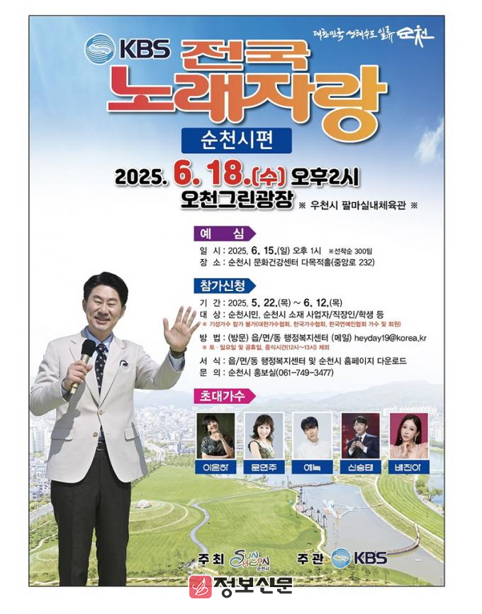 ![]() 순천시, 전국 노래자랑 순천시편 오는 6월 오천그린광장에서 개최 |