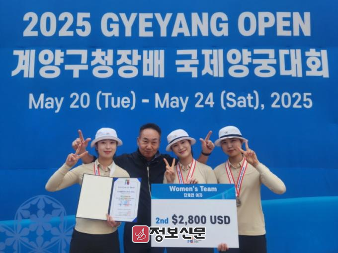 ![]() 순천시청 양궁팀, 2025 계양구청장배 국제양궁대회 여자 단체전 은메달 획득(왼쪽부터 유시현, 임동일 감독, 이은경, 남수현) |
