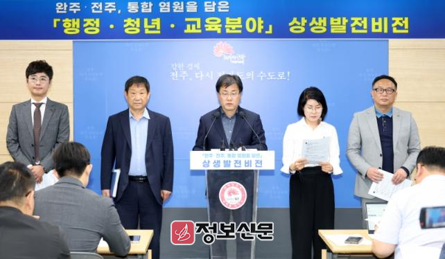 전주시가 완주·전주 통합을 염원하며 행정·교육·청년 분야에서 두 지역의 동반성장을 위한 상생발전 방안을 내놓았다.