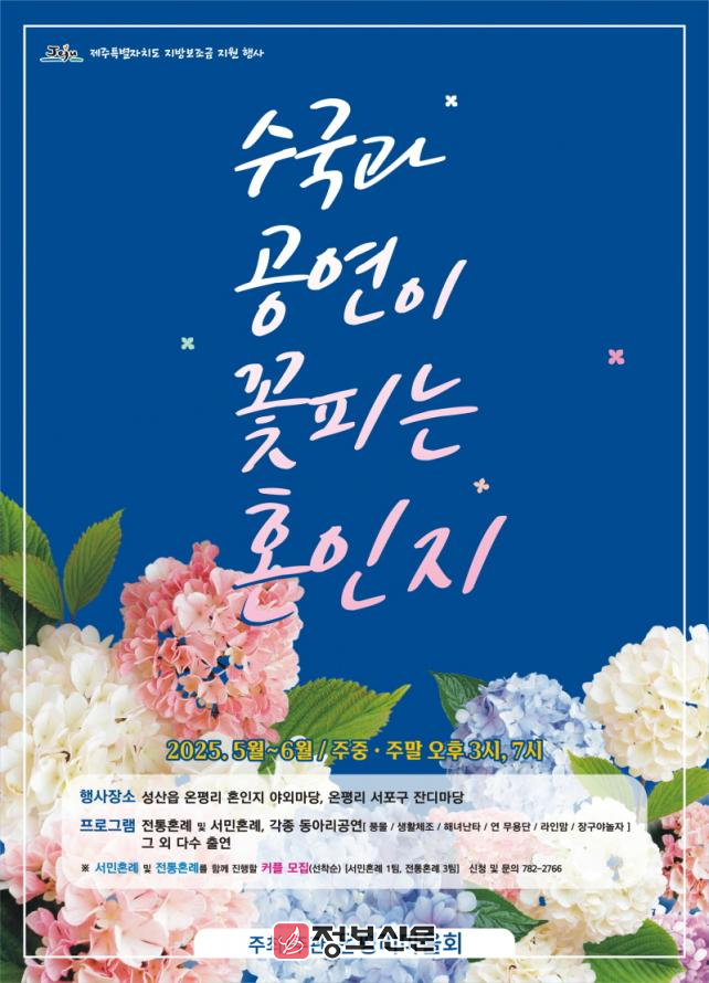 ![]() 서귀포시 성산읍 온평리마을회, 제4회 수국과 공연이 꽃피는 혼인지 개최 |