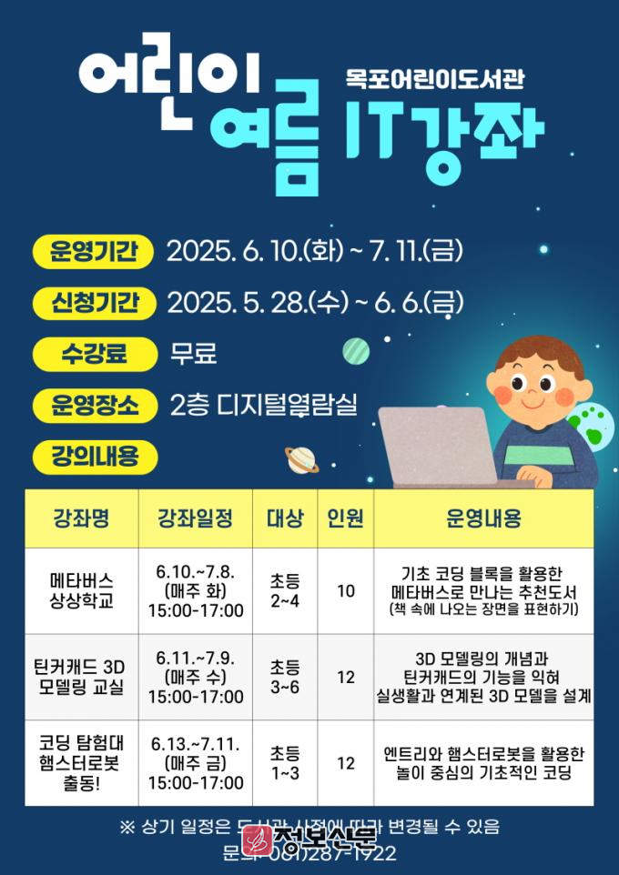![]() 목포어린이도서관,‘2025년 여름 IT강좌’운영 |